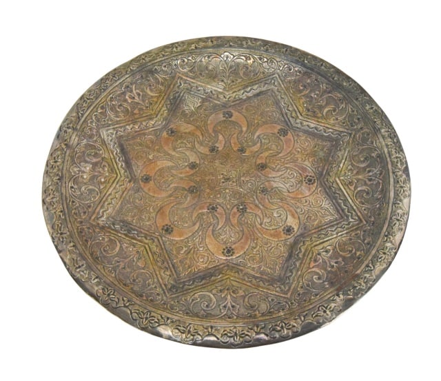 ORNATE SILVERPLATE REPOUSSE FLORAL SERVING BOWL2 days LeftAntique Ornate Silver Plated Pierced Rim Tray c.1900A Middle Eastern Handmade Brass Tray18 hrs LeftA Fine Persian Handmade Decorative Wall Tray18 hrs LeftA LARGE ROUND ANTIQUE ZAND - QAJAR HAND-ENGRAVED BRASS TRAY, PERSIAN, 19TH CENTURYMar 06, 2026A PERSIAN SILVER TRAY, ISFAHAN, 20TH CENTURYMar 06, 202619th Century Persian Kajar Handmade Brass Tray18 hrs LeftA large vintage hand-engraved brass tray, likely of Middle Eastern or North African originMar 07, 2026ANTIQUE ELKINGTON SILVER PLATED PLATTER3 days LeftANTIQUE MIDDLE EASTERN BRASS TRAY INLAID W SILVERMar 08, 2026A Middle Eastern Handmade Hand Hammered Cold Enameled Tray18 hrs LeftVintage Antique Decorative Middle Eastern Copper Charger TrayMar 22, 2026A fine silver-gilt Persian appreciation plateMar 22, 2026Persian Silver Engraved Figural TrayMar 14, 2026LARGE JEWISH PEWTER PASSOVER PLATE, c. 1750Mar 28, 2026A QAJAR GOLD DAMASCENED STEEL SHIELD, PERSIA, 19TH CENTURYMar 06, 2026