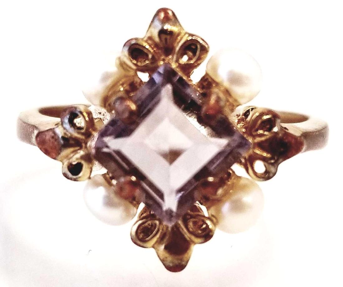 Vintage Silver Pearl & Amethyst Ring