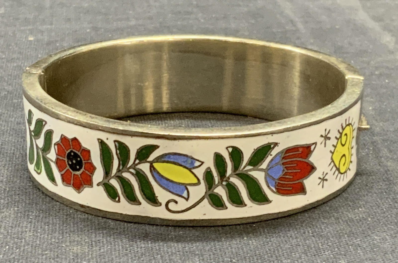 Vintage Silver Tone Enameled Bangle Bracelet
