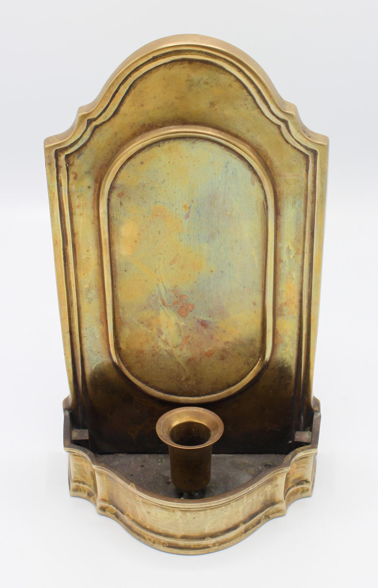 SoldVintage Solid Brass Sconce/CandlleholderVintage solid brass sconce/candleholder, Hebrew letters on the back, 10"h x 6"w x 4"dSee Sold Price