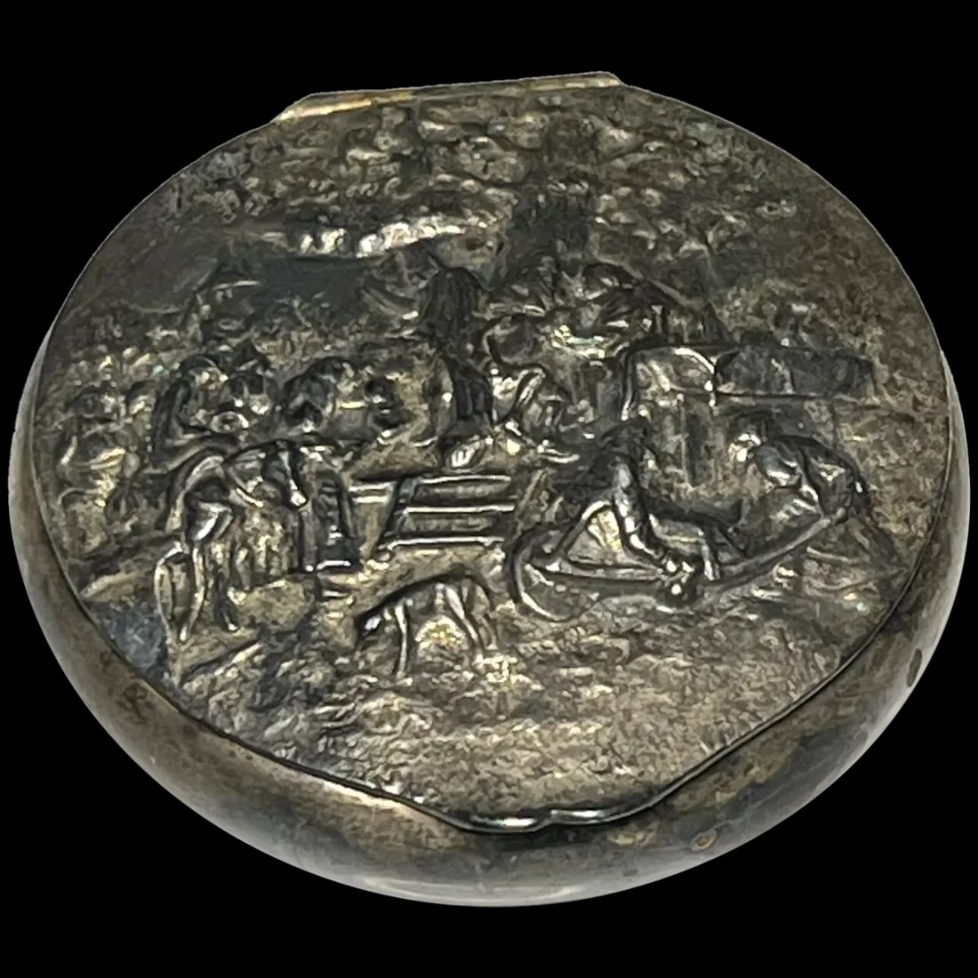 HEIRLOOM VINTAGE ESTEE LAUDER COMPACT21 hrs LeftRam Sterling Silver Comstock Silversmiths Belt Buckle Vintage Lot# DG 8303 days LeftDutch Netherlands 1872 Antique Oval Repousse Trinket Box In 875 Sterling SilverFeb 18, 2026AN ANTIQUE SILVER REPOUSSE SNUFF BOX. 76 grams. 8 cm x 6.5 cm.3 days Left800 German Silver Parcel gilt Snuff Box Hand chased Repousse genre scene7 days Left[ART] Brass Snuff Box w/ Abrahamic EngravingsMar 05, 2026AN ANTIQUE SILVER SNUFF BOX. 24 grams. 5 cm wide.3 days LeftINTRICATE STERLING SILVER ANTIQUE BETEL TRINKET BOX 346 GRAMS1 day LeftGerman Sterling Silver Repoussé Snuff Box Pendant, Figural Scene, 19th CenturyFeb 20, 2026AN 18TH CENTURY CONTINENTAL SILVER AND MOTHER OF PEARL SNUFF BOX AND COVER decorated with figures on3 days LeftVintage Sterling Silver Chinese Foo Dogs Wealth Repousse Mirrored BoxFeb 19, 2026A Chinese Silver Trinket Box, 20th Century, 90FG3 days LeftRUSSIAN IMPERIAL SILVER SNUFF BOX, 182722 hrs LeftPERSIAN ENGRAVED SILVER BETEL NUT BOXMar 07, 2026Gorham Sterling Silver Besamim Holder Repousse Box Antique396 Lots AwayAn early 18th century pressed horn silver-mounted snuff box maker mark only I.S