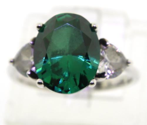 Sterling Silver Emerald Clear Spinel Ring