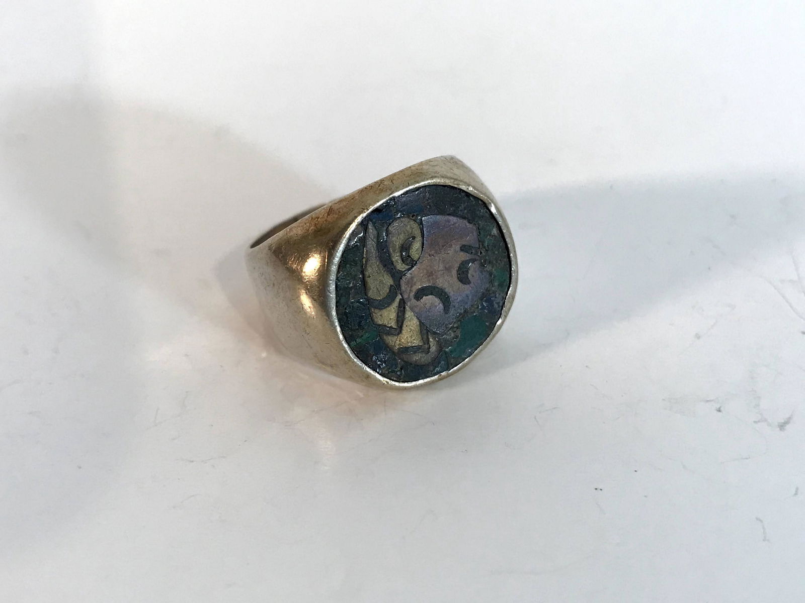SoldVintage Sterling Silver Ring Artist Signed ShanoHand Crafted One of a Kind ring by Shano (New Mexico), Using Sterling Silver and Repurposed Porcelain. This Particular Design shows a portrait of a woman wearing a turban. Size 9.5, porcelain center aSee Sold Price