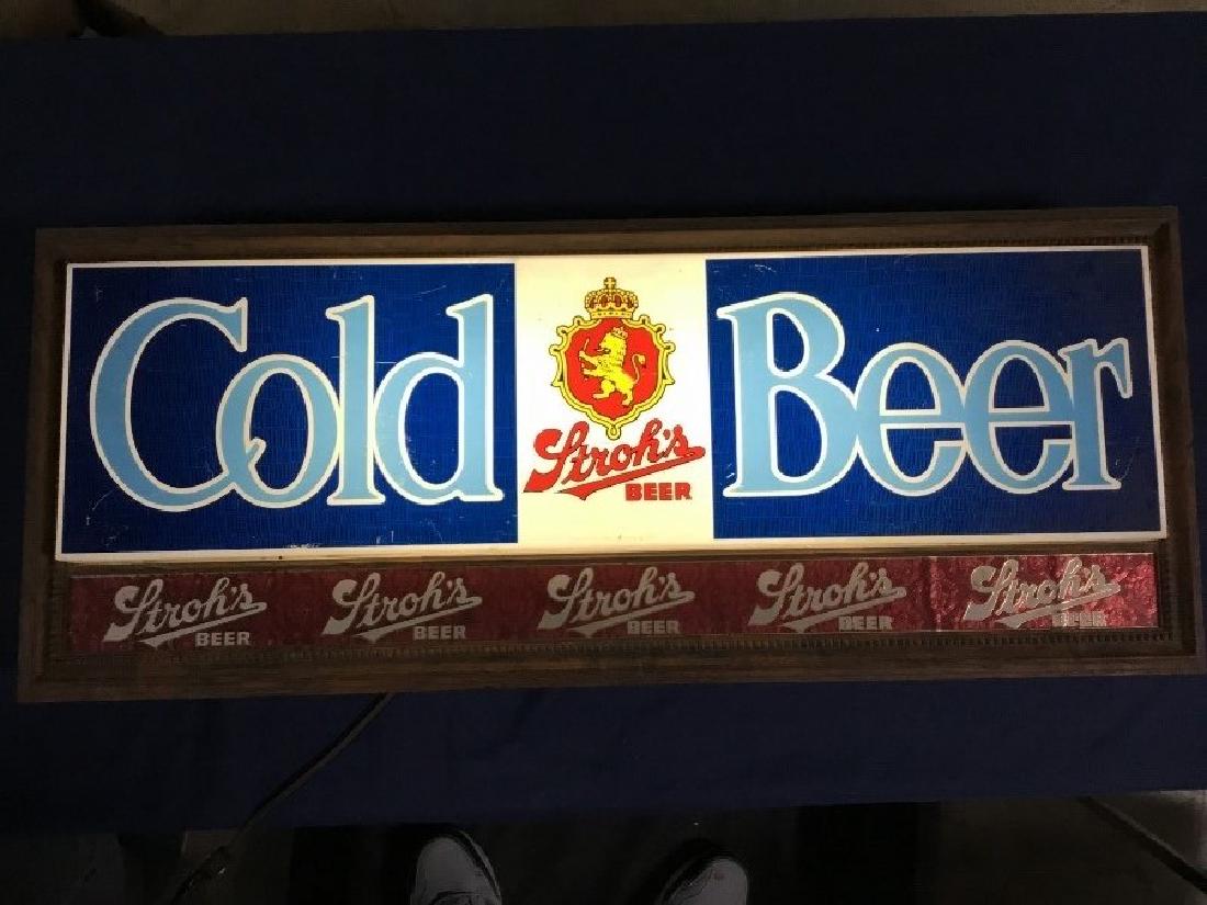 Vintage Strohs Cold Beer Sign, 1970s.