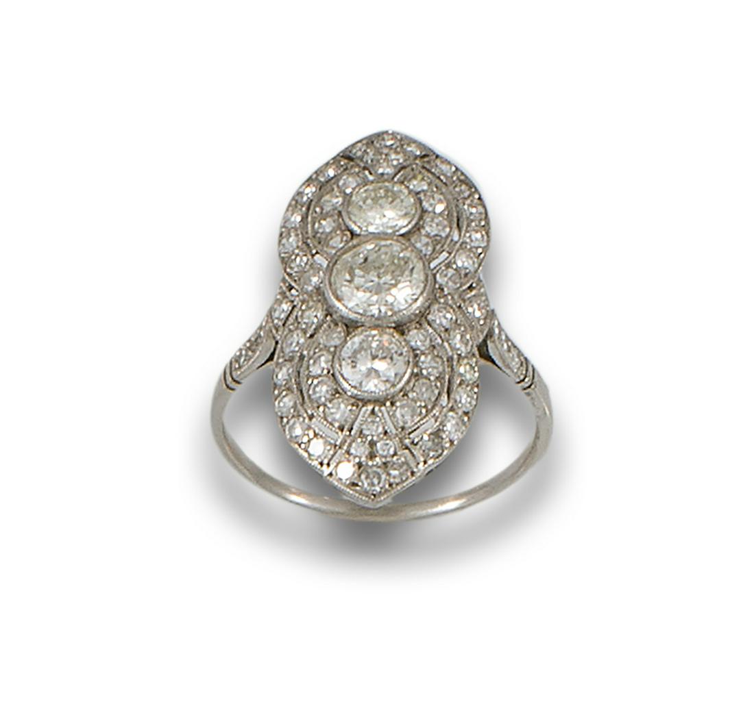 Vintage style shuttle ring in platinum.