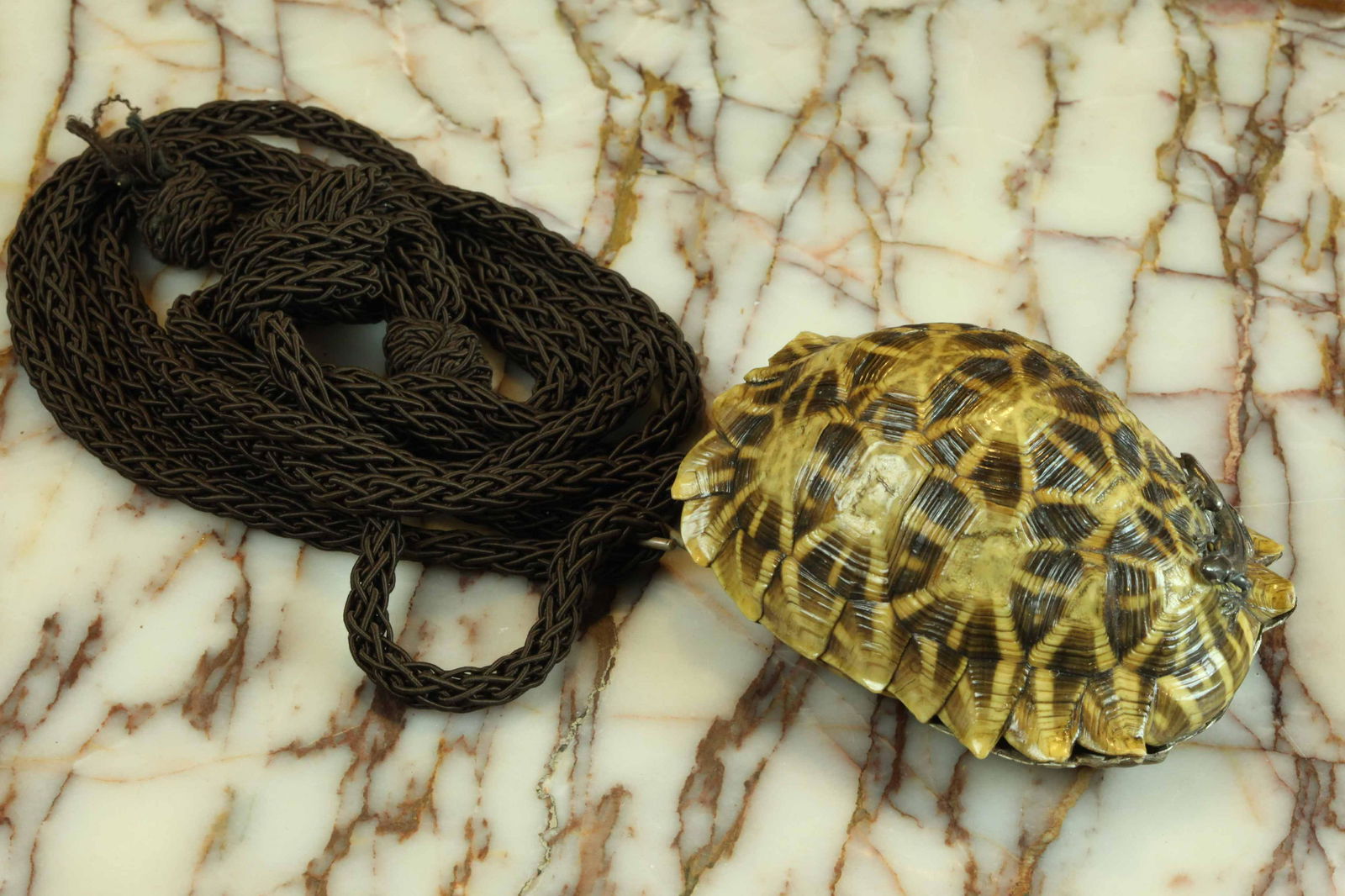 Vintage turtle shell decorated with a sterling silver
