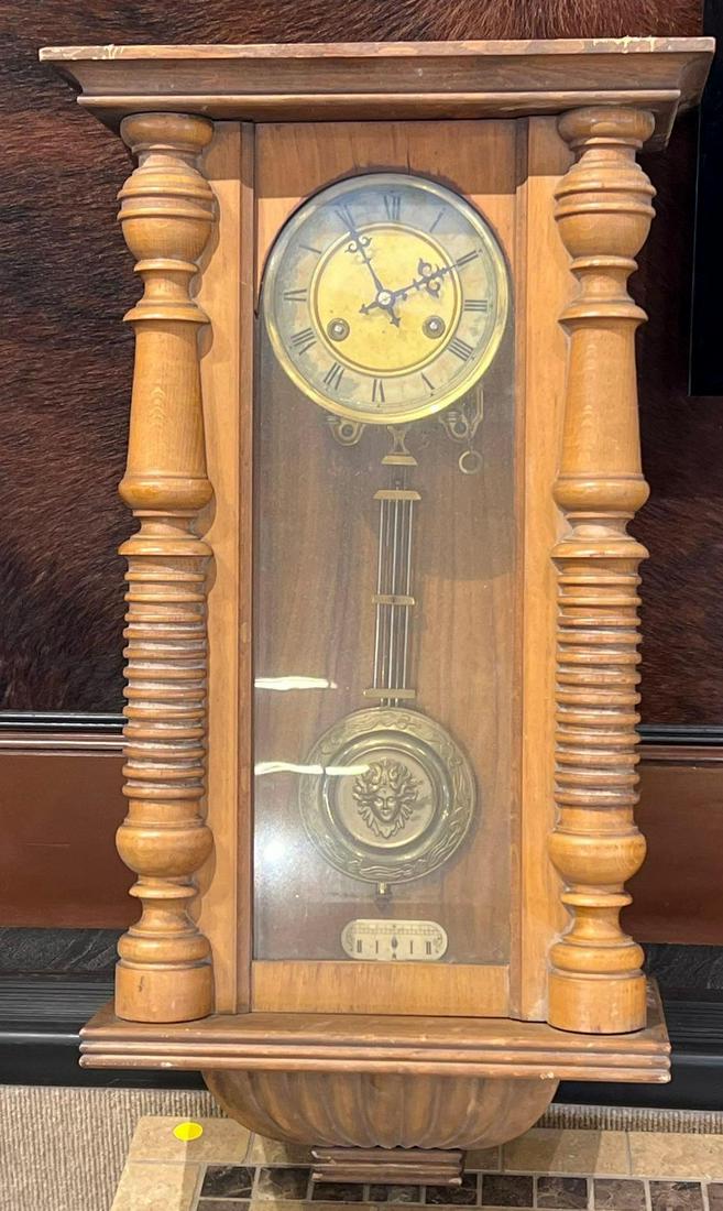 1890 German wall clock w/carved horse finial, enamel & brass dial, brass works. 42"T x 12"W x 8" D7 hrs LeftAntique European Wall Clock with Dual Weights & Gong StrikeMar 15, 2026Antique German Wall Clock with Enamel DialMar 15, 2026Howard Miller Tempus Fugit Grandfather ClockMar 04, 2026Tall German Longcase Clock with Warm Gong Chime, Original MovementMar 15, 2026ANTIQUE WOODEN REGULATOR WALL CLOCKMar 08, 2026Antique John Oately Co. "Heckla" Oak Gingerbread Wall Clock4 days LeftGerman Wall Regulator Clock, EnfieldMar 15, 2026German 3-Weight Wall Clock with Moon Phase & Musical AutomataMar 15, 2026A.G.U. Lenzkirch table clock / wall clock circa 1890,Mar 14, 2026Elegant wooden wall clockMar 15, 2026American Neoclassical Mantel Clock (Sessions Clock Co.)Mar 15, 2026Antique Neo-Rococo Wind-Up Wall ClockMar 14, 2026Antique Walnut Shelf Clock by WaterburyMar 04, 2026German Wall Hanging Clock w/RA PendulumMar 05, 2026SELF WINDING CLOCK CO. REGULATOR-STYLE CLOCK New York, Late 19th Century Height 36". Dial diameterMar 12, 2026