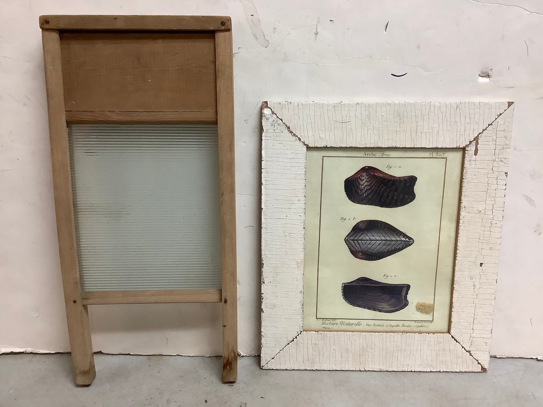 Vintage Washboard(18inx8.5in) and framed Artwork