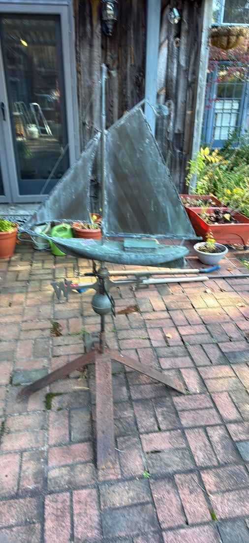 Four-Sail Gaff-Rigged Racing Pond Yacht1 day LeftAntique Painted Cow Lightning Rod Country Weathervane w/ Cardinals4 days LeftAMERICAN FOLK ART WINDMILL WHIRLIGIG / WEATHERVANEMar 06, 2026Painted Sawing Wood Weather VaneMar 04, 2026Vintage Painted Schooner Weathervane with Tin Sails3 days Left60" Wooden Rustic Endeavour Model Sailboat DecorationMar 05, 2026Rustic Wooden Endeavor Model 60" Sailboat DecorationMar 12, 2026Curtis Jere Brass Sailboat SculptureMar 05, 2026Lightning rod, horse weathervane, lavendar ballMar 27, 2026AMERICAN FOLK ART CARVED AND PAINTED WATERPUMP FIGURAL WHIRLIGIGMar 06, 2026IRON ARROW WEATHERVANE3 days LeftCurtis Jere-style Wire Sailboat Table Sculpture2 days LeftCopper Finish "Bull" Three Dimensional Figural Weathervane3 days LeftAntique Hammered Metal Wind VaneMar 07, 2026Copper Finish "Pig" Three Dimensional Figural Weathervane3 days LeftCopper Finish "Horse & Carriage With Driver" Three Dimensional Figural Weathervane3 days Left