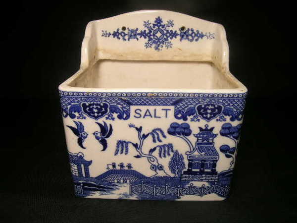 VINTAGE WILLOWWARE BLUE WHITE SALT BOX