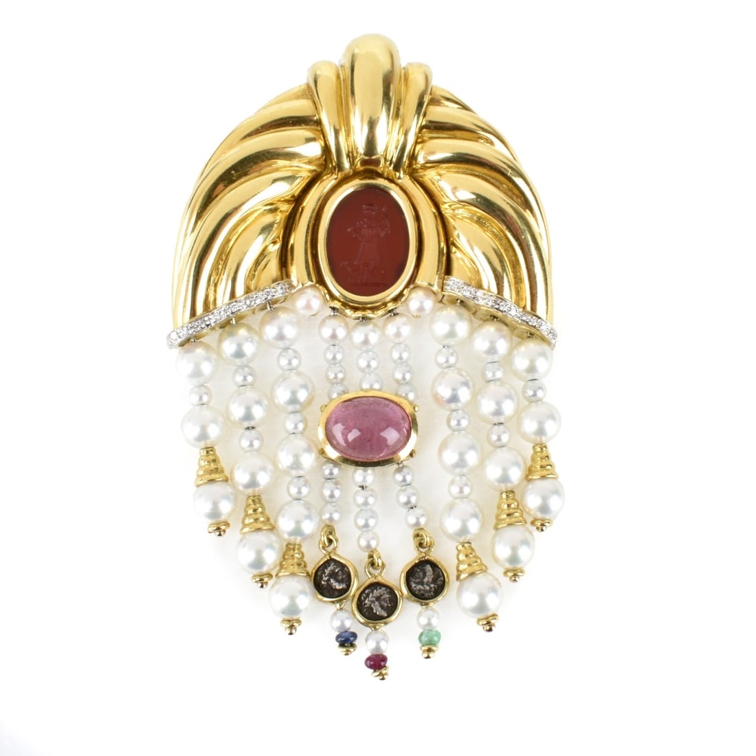 Vintage Hodgepodge Collection Gemstone Pearl Brooch 14K Yellow Gold, 13.66 GrBOUCHERON 18k Gold Retro CLIP Pin Brooch Diamond SapphireFrench Vintage BROOCH Wild Rose Clip Pin 18k Gold Estate JewelryArt Deco Tutti-Frutti 10k Gold PENDANT PIN BROOCH Antique Gemstone SilverVintage 1950's Pearl Opal Pendant Brooch Pin 14K Yellow Gold, 6.52 GramsVintage 1930's Seed Pearl Fan Brooch Pin Pendant 14K Yellow Gold, 7.19 GramsVintage 1950's 1960's Sapphire Orange Enamel Brooch Pin 18K Yellow Gold 8.79 GrVintage 1950's 1960's Pearl Ruby Flower Rose Brooch Pin 14K Yellow Gold 13.51 GrRetro 18K Yellow Gold Brooch with Sapphires and RubiesMar 06, 2026Brooch - 18 kt. Yellow gold, 18K Yellow Gold Brooch / Necklace with 1.55Ct Kunzite, Rhodochrosite,Mar 14, 2026Retro 18K Yellow Gold Brooch with Sapphires and RubiesMar 05, 2026Gold, Gem-Set and Diamond Clip-Brooch2 days Left1952 GD & Co 18K Rose Gold Pink Pearl Brooch Fully SignedMar 06, 202618K YELLOW GOLD 2.65CT DIAMOND AND RUBY BROOCH3 days Left18K YELLOW GOLD AND SILVER 6.25CT DIAMOND AND RUBY BROOCH3 days Left1952 GD & Co 18K Rose Gold Pink Pearl Brooch Fully SignedMar 06, 2026