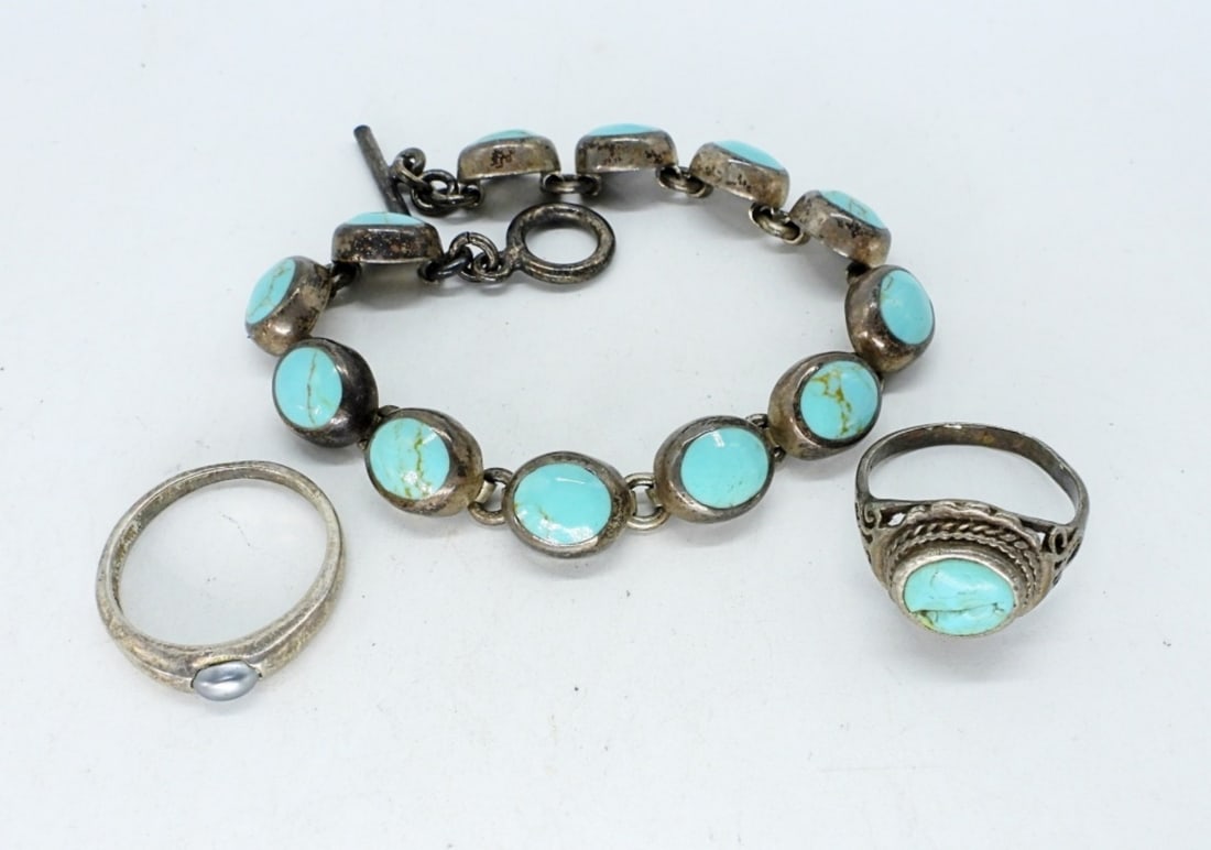 VTG 925 TURQUOISE BRACELET, RINGS