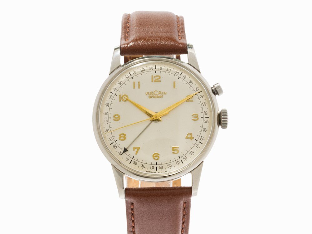 SoldVulcain Cricket Stainless Alarm wristwatch, circa 1940smanual movement; currently running, not tested for accuracy; alarm inconsistent; setting works in one direction onlySee Sold Price