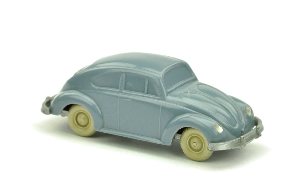 SoldBayer - VW Kaefer (Typ 4), graublau113/3E mit "Bayer"-Abziehbildern auf Seitentueren (100%), Originalitaet fraglich (AZB gibt es auf Faller-Boegen, sind aber auch bei einigen um 1960 hergestellten Wiking-Autos bekannt), sehr gut (WikinSee Sold Price