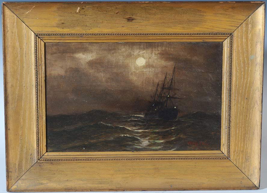 AMERICAN SCHOOL (19th Century,), Moored hulk., Oil on panel, 8" x 10". Framed 14" x 16".7 days LeftOval painting oil on wood - Steam Ship H.MS Rising Star 18212 days LeftOval painting oil on wood - Steam Ship H.MS Rising Star 1821Feb 28, 2026Frank Knox Rehn (PA,MA,1848-1914) oil painting antiqueMar 01, 2026Carl Philipp Weber (PA,German,1849-1922) oil painting antiqueApr 12, 2026Foster (US,20C) oil paintingApr 19, 2026Charles Robert Patterson (American, 1875-1958) - The Sea WitchMar 07, 2026Antique Steamboat in Storm Oil Painting on TinMar 07, 2026Alexander Nelke (Estonian/American, 1894-1974), Clipper Ships at Full SailMar 14, 2026WESLEY ELBRIDGE WEBBER (Massachusetts/California/Maine, 1841-1914), Tugboat towing a stranded7 days LeftJAMES GALE TYLER (Connecticut/New York, 1855-1931), Sailboat under moonlight., Oil on canvas, 28" x7 days LeftA.R Wilber 1869-1949 Sailing Ship Oil PaintingMar 11, 2026WILLIAM R. DAVIS (Massachusetts, 1952-), "Rum Runner and the Cursed Moon"., Oil on board, 24" x 36".7 days LeftATTRIBUTED TO EVELYN MONTAGUE BICKNELL (New York/Bermuda, 1857-1936), Schooner off Point Gammon7 days LeftEuripean School Ship at Sea Antique Oil on Canvas Signed on the BottomMARSHALL JOHNSON, JR. (Massachusetts, 1850-1921), Clipper ship and other vessels sailing of a7 days Left