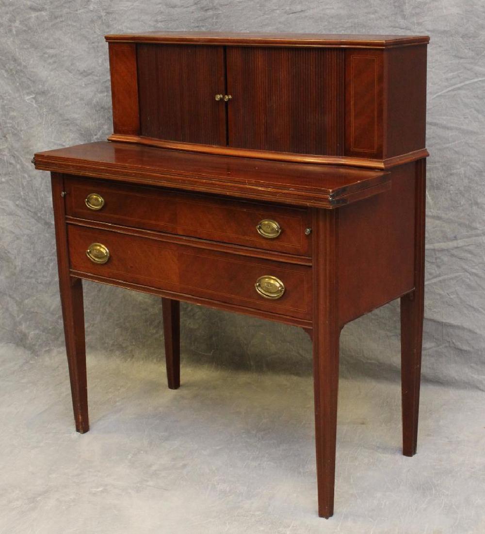 ANTIQUE FALL FRONT MAHOGANY TAMBOUR DESK