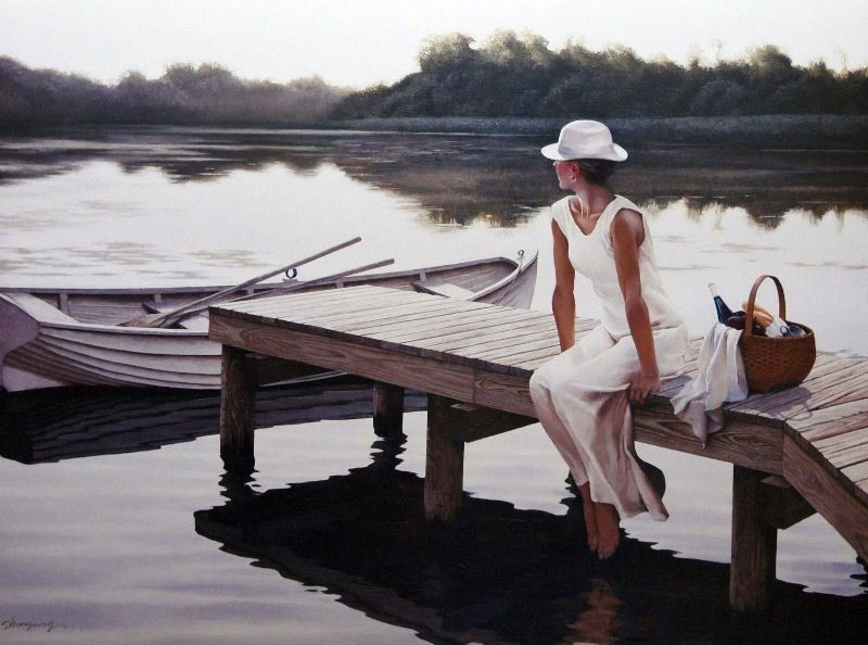 Waiting by Zhongping Shi - Offset Lithograph -