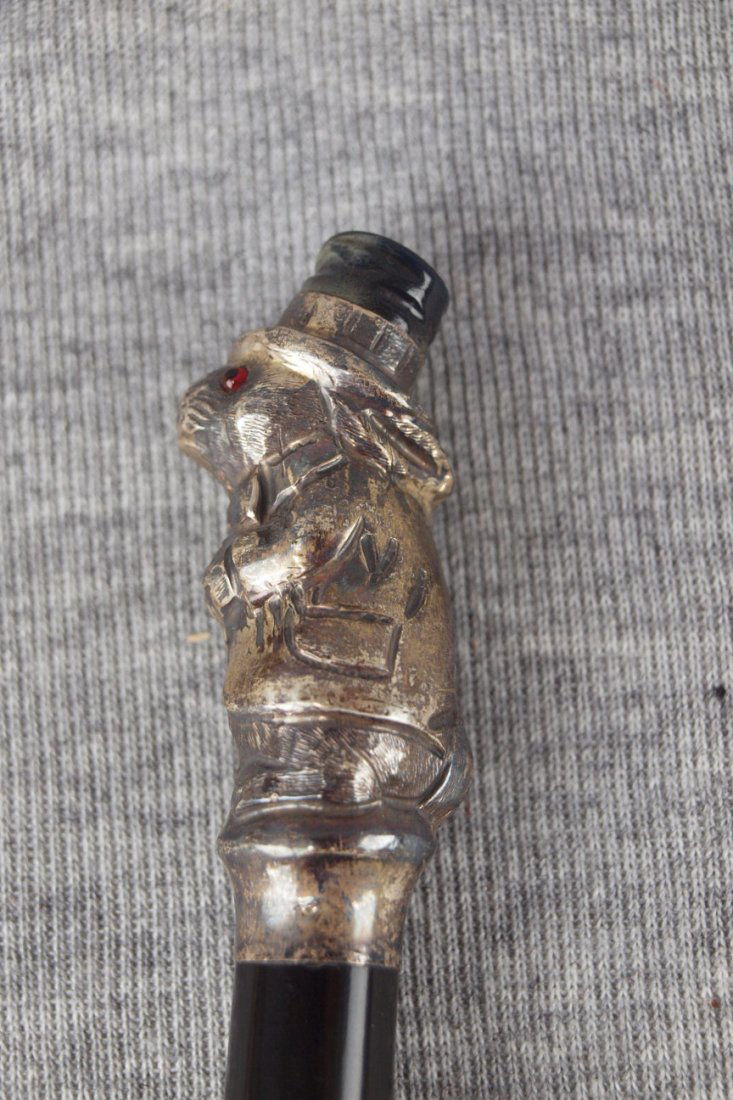 Walking stick with hallmarked silver rabbit handle with