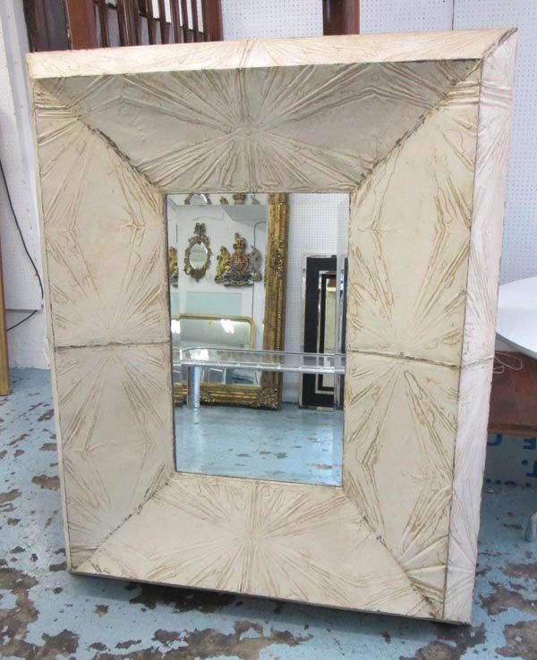 SoldMetal Frame rectangular wall mirror with a silver mosaic Open Wide Frame.Metal Frame rectangular wall mirror with a silver mosaic Open Wide Frame. size: 32h 20.5w outside frame 46.5h 35wSee Sold Price