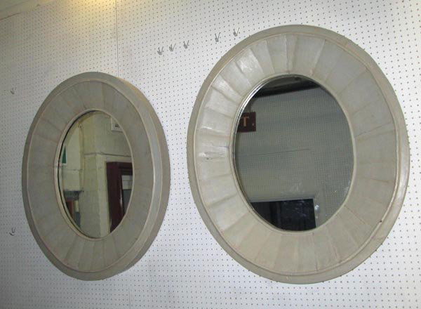 WALL MIRRORS, a pair, oval beach hut chic painted grey,