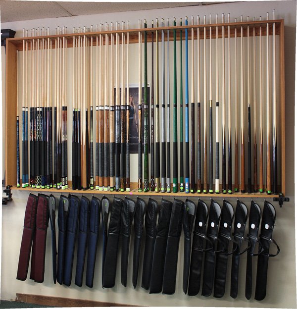 Wall mounted pine 141 pool cue rack