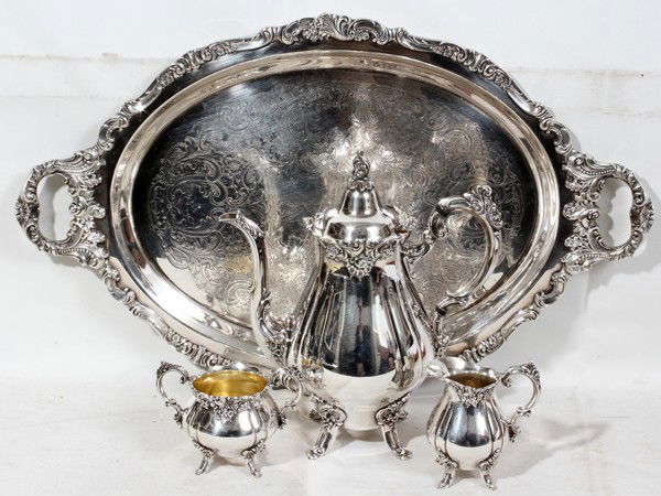Five-Piece Silverplate Tea and Coffee Service with Large Serving TrayMar 07, 2026Rococo Style Silver Plate Coffee And Tea Set (7-piece), C. Mid-late 20th Century2 hrs LeftFive-Piece Silverplate Tea and Coffee Service in the “King Francis" Pattern with TrayMar 07, 20266PC STERLING TEA SERVICE, INTERNATIONAL, 133 TOWMar 07, 2026James Dixon & Sons Silver Plate Coffee Service, 5Mar 07, 2026American Aesthetic Silver-Plate Four Piece Coffee Service, late 19th c., Coffee- H.- 12 1/4 in., W.-1 day LeftDerby Silver Co. Silver Plate Tea Service, 4 Pcs.Mar 12, 2026Vintage Victorian Silver-plated Tea Set 5pcMar 05, 2026Ornate Continental Silver Partial Tea ServiceMar 11, 2026A Silver Coffee Service5 days Left5 Pieces Preisner Sterling Silver Tea Set with a Large Oval English Sterling Silver Tray2 days LeftE.G. WEBSTER & SON SILVER-PLATED FIVE-PIECE COFFEE AND TEA SERVICE6 days LeftReed & Barton Baroque Silverplate Coffee Service1 day LeftLee & Wigfull Ltd. Silver Plate Tea Service, 3 PcsMar 12, 2026Silver Plate Tea Set With Orientalist Motifs And Associated Tray (5-piece)2 hrs LeftGorham Chantilly Pattern Silver Plated Tea and Coffee ServiceMar 13, 2026