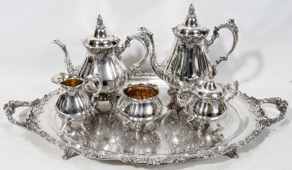 Vintage WM A Rogers Silverplated Tea Pot & Creamer5 days LeftGorham Sterling 5 Pc. Coffee and Tea SetMar 10, 2026BOIN-TABURET, FABERGE - 8pc. FRENCH ANTIQUE 950 STERLING SILVER TEA SET + 6 FABERGE ESPRESSO CUPS !Rococo Style Silver Plate Coffee And Tea Set (7-piece), C. Mid-late 20th Century6 days Left6PC STERLING TEA SERVICE, INTERNATIONAL, 133 TOWMar 07, 2026SILVERPLATE TEA AND COFFEE SERVICE3 days LeftSilver Plate Tea Set With Orientalist Motifs And Associated Tray (5-piece)6 days LeftReed and Barton "Regent" Tea & Coffee Service Set (6)Mar 07, 2026Five-Piece Silverplate Tea and Coffee Service with Large Serving TrayMar 07, 2026COLLECTION OF SILVERPLATEMar 06, 2026Five-Piece Silverplate Tea and Coffee Service in the “King Francis" Pattern with TrayMar 07, 20265 Pieces Preisner Sterling Silver Tea Set with a Large Oval English Sterling Silver TrayFeb 28, 2026A six piece German 800 standard silver tea and coffee service, Wilhelm Binder, Schwabisch Gmund6 days LeftAmerican Aesthetic Silver-Plate Four Piece Coffee Service, late 19th c., Coffee- H.- 12 1/4 in., W.-Feb 27, 2026Reed & Barton Baroque Silverplate Coffee ServiceFeb 27, 2026James Dixon & Sons Silver Plate Coffee Service, 5Mar 07, 2026