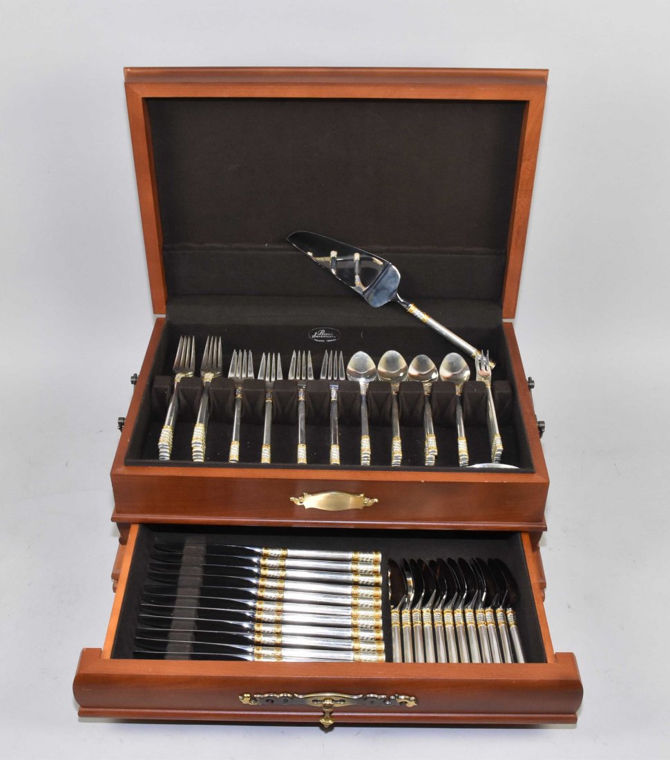 Gorham Sterling Flatware Service for 12Mar 10, 2026TOWLE "GOLD ARISTOCRAT" GOLD-PLATED FLATWARE SETFeb 22, 2026Wallace Rose Point Sterling flatware in velvet lined box, 11 knives, 12 salad forks, 12 dinnerFeb 24, 2026"Grande Baroque" by Wallace Sterling Silver 106pc Flatware Set2 days LeftSterling Silver Dinner Set for 12 in Storage Box2 days Left"Francis I" Reed & Barton Sterling Silver 114pc Flatware Set2 days LeftTowle Legato Pattern Sterling Silver Flatware Set - 68 Pieces Total3 days Left64 PC. GORHAM "MELROSE" STERLING FLATWARE SERVICEFeb 22, 2026Gorham Chantilly Sterling Silver Flatware Set of 57 PiecesJul 26, 2025Towle Legato Sterling Silver Flatware Set for 12 with 57 PiecesMar 03, 2026Oneida Caprice Silverplate Flatware Set for 12 - 82 Pieces with Vintage ChestMar 03, 2026Reed and Barton Dancing Flowers Sterling Silver Flatware - Set of 55Jul 10, 2025Reed and Barton Dancing Flowers Sterling Silver Flatware - Set of 55Jul 18, 2025Reed and Barton Dancing Flowers Sterling Silver Flatware - Set of 55Jul 04, 2025Reed and Barton Dancing Flowers Sterling Silver Flatware - Set of 55Jun 25, 202588 PC. GORHAM "CHANTILLY" STERLING SILVER SERVICEFeb 22, 2026