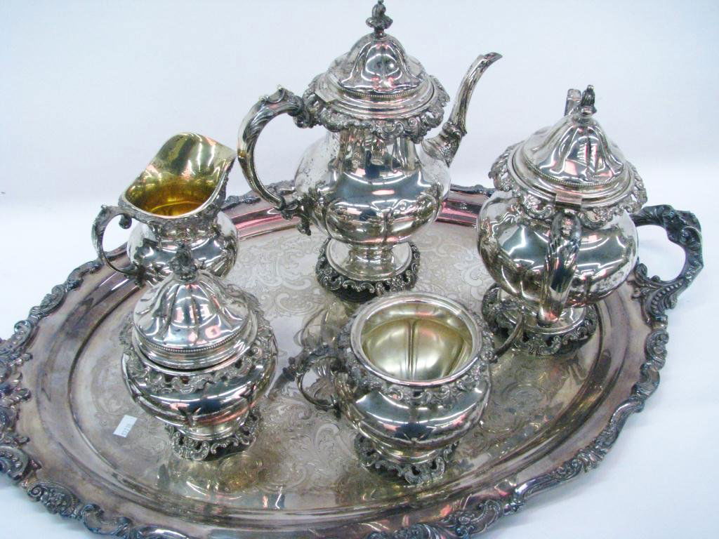 Lot of Victorian Silverplate Serving Pieces4 days Left(5) ENGLISH ELKINGTON & CO. STERLING SILVER TEA & COFFEE SERVICEFeb 22, 2026William Hunter 1842 Sterling Teapot Set of ThreeFeb 28, 2026Vintage WM A Rogers Silverplated Tea Pot & CreamerFeb 25, 2026Sterling Silver Tea Set5 days Left(4pc) GORHAM STERLING COFFEE SERVICEFeb 22, 2026Godinger Mini Silver Plated 3 Piece Coffee Tea Set Teapot Creamer Sugar and Danny Wilson Tray Set2 days LeftAmerican Silver Five-Piece Tea and Coffee Service4 days LeftTiffany & Co. Antique Victorian Silver Plate Coffee or Tea Service SetFeb 17, 2026Five Piece Silverplated Tea Service, "Lancaster Rose" by PooleFeb 16, 2026Antique Esquire Sterling Silver Coffee/Tea 4 Piece ServiceJul 17, 2025Exceptional Antique Chinese 6 Piece Sterling SilveFeb 18, 2026Reed & Barton Francis I Sterling Silver Tea and Coffee Service4 days LeftWallace “Baroque" Silver-Plated Tea Set With Tray, 5 Pieces7 days Left1896 Gorham Sterling Coffee & Tea Set w/ Cream & SugarFeb 22, 2026Silver Plated Items Including Gorham and Reed & Barton7 days Left