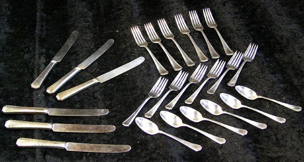 SoldA Wallace silver Rhythm flatware set for twelveA Wallace Silversmiths sterling silver Rhythm pattern flatware service for twelvesecond quarter 20th centuryComprising 12 dinner forks, 12 dinner knives, 12 salad/dessert forks, 12 round bowl soup spoSee Sold Price