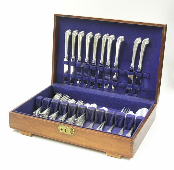 Wallace Rose Point Sterling flatware in velvet lined box, 11 knives, 12 salad forks, 12 dinnerFeb 24, 202655 Piece Sterling Silver Wallace "Saxon" Flatware SetFeb 28, 2026Tuttle Sterling Silver Flatware SetFeb 24, 2026International "Enchantress" Sterling Silver Flatware SetJul 27, 2025International "Enchantress" Sterling Silver Flatware SetJul 24, 2025Reed & Barton English Crown Silverplate Flatware Set for 12 80 PiecesFeb 27, 2026Towle Old Colonial Sterling Silver Flatware Set 48 Pieces Service for 12Feb 16, 2026Gorham Sterling Silver FlatwareFeb 24, 2026Lunt Memory Lane Sterling Silver Flatware Set 46 Pieces with Storage ChestFeb 17, 2026Gorham Chantilly Flatware Sterling Silver Silverware 70 Pieces2 days LeftReed and Barton Stainless Flatware Service for TwelveFeb 28, 2026Grand Colonial Sterling Silver Flatware Set by Wallace 33 Pieces Service for 82 days LeftReed & Barton Hampton Court Sterling Silver Flatware Set 40 Pieces with Storage Chest1 day LeftWorld's Fair New York 1939 Art Deco Silver Plate Flatware Set By WM. Rogers MFGMar 15, 2026Gorham Chantilly Sterling Silver 44-Piece Dinner Flatware Set for 8 with Storage Chest4 days LeftInternational "Enchantress" Sterling Silver Flatware SetJul 17, 2025