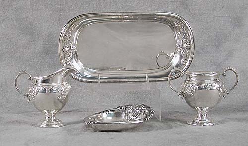 Lot Silver Plate Items6 days LeftLot Silver Plate Trays6 days LeftLot Silver Plate Items6 days Left20PC LOT OF STERLING SILVER ITEMS, 44.3 T.O.W.Mar 07, 2026PRESSED LACY CALIFORNIA COVERED SUGARS AND CREAMER, LOT THREEMar 05, 2026ASSORTED SILVER-PLATED AND OTHER ARTICLES, LOT OF SEVEN6 days LeftGORHAM AND OTHER STERLING SILVER TABLE ARTICLES, LOT OF THREE6 days LeftENGLISH SILVER LUSTRE CERAMIC TEA AND COFFEE ARTICLES, LOT OF SIX6 days LeftDominick and Haff Sterling Reticulated PlatesMar 08, 2026Dominick and Haff Sterling Reticulated PlatesMar 08, 2026Reed & Barton, Etc. Silver Plate Tableware, 10 PcsMar 12, 2026Six English & American Silver Table ArticlesMar 13, 2026William Adams, Etc. Silver Plate Tableware, 8 Pcs.Mar 12, 2026STERLING PIERCE WORK PLATE WITH PORRINGER, CUP, TONGS & A PR OF OPEN SALTS WITH SPOONS APPROX. 20.1Mar 15, 2026Five American Sterling Silver Table ArticlesMar 13, 2026Small 800 Silver Double Handled TrayMar 11, 2026