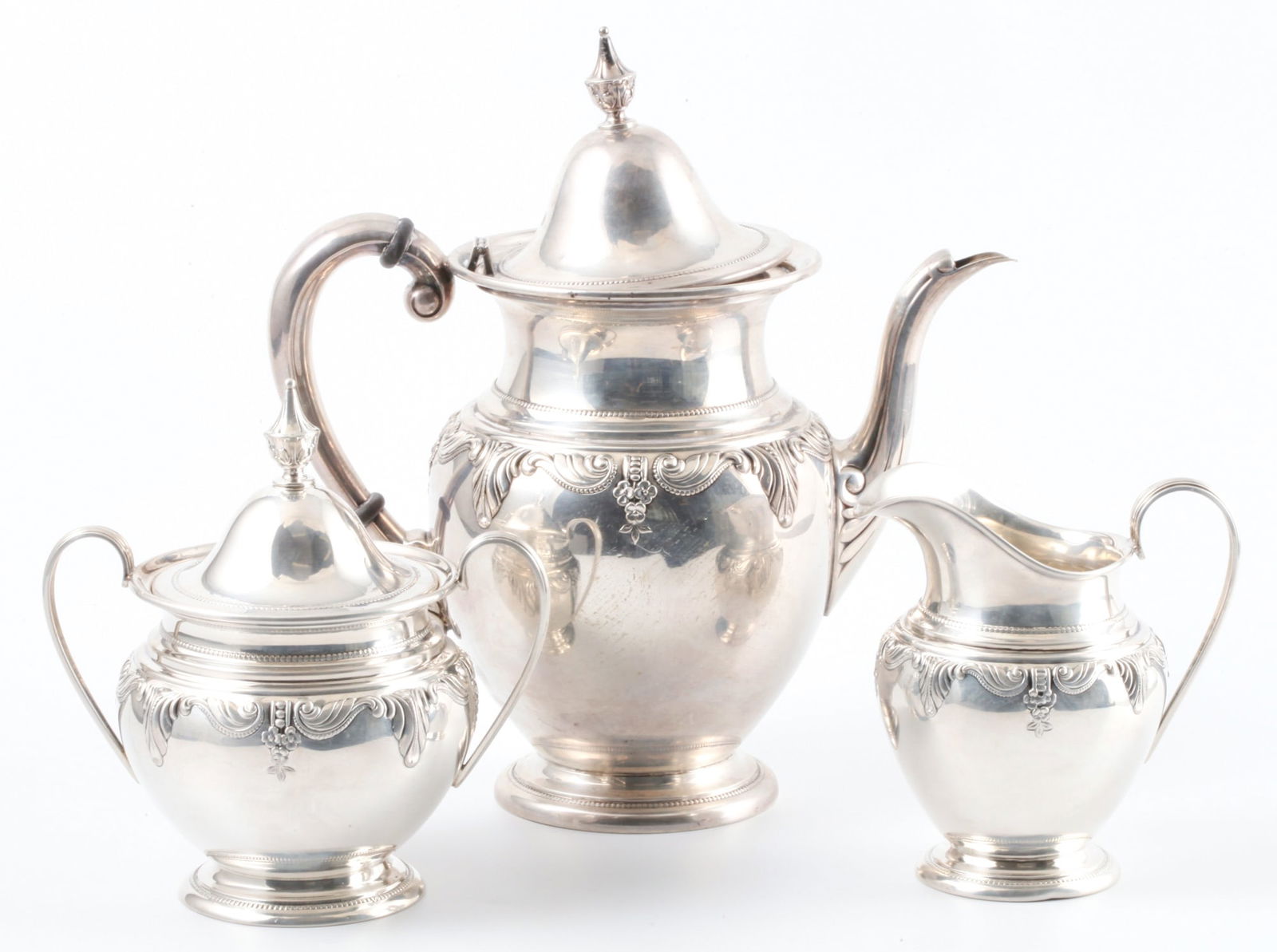 William Hunter 1842 Sterling Teapot Set of Three3 days LeftSterling Coffee and Tea Set by Reed & BartonMar 10, 2026Vintage WM A Rogers Silverplated Tea Pot & Creamer4 hrs Left(4) PIECE ASSEMBLED STERLING TEA SERVICEMar 05, 2026(3) PIECE ROCKWELL STERLING TEA SERVICEMar 05, 2026SILVER. (4) Pc. Italian .800 Silver Tea Service.Mar 08, 2026Wilhelm BINDER. 6-piece tea and coffee set in Queen Anne style. 925, 835 and 800 silver.3 days Left3 pieces of silver. Teapot, sugar bowl and cream jug. 925 silver. Sheffield. England.3 days Left800 silver teapot and sugar bowl23 hrs LeftPaul Revere Reproduction Sterling Silver Coffee Pot, Creamer, & Sugar BowlMar 19, 2026ANTIQUE CHRISTOFEL TEA SET5 days LeftWallace Stradivari 3 Piece Sterling Silver Coffee Set 6350Mar 04, 2026F.B. Rogers Five-Piece Sterling Silver .925 Tea SetInternational Prelude Four-Piece Sterling Silver .925 Tea SetLalaounis Sterling Silver Tea Service5 hrs LeftSTERLING (5) Pc. Royal Danish Sterling Tea ServiceMar 08, 2026