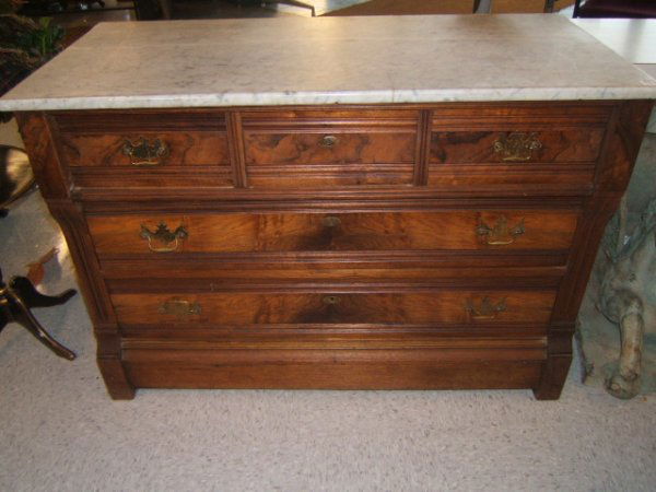 WALNUT 5 DRAWER MARBLE TOP CHEST