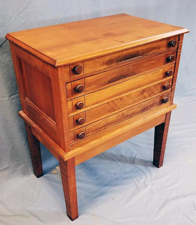 SoldWalnut 5 drawer spool cabinetWalnut 5 drawer spool cabinet, paneled sides, wood knobs, nailed drawers, 16"t. x 27" x 17 1/2"See Sold Price