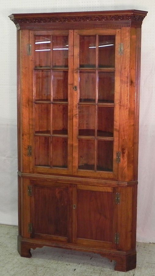 Walnut cabinet makers gl. door corner cupboard