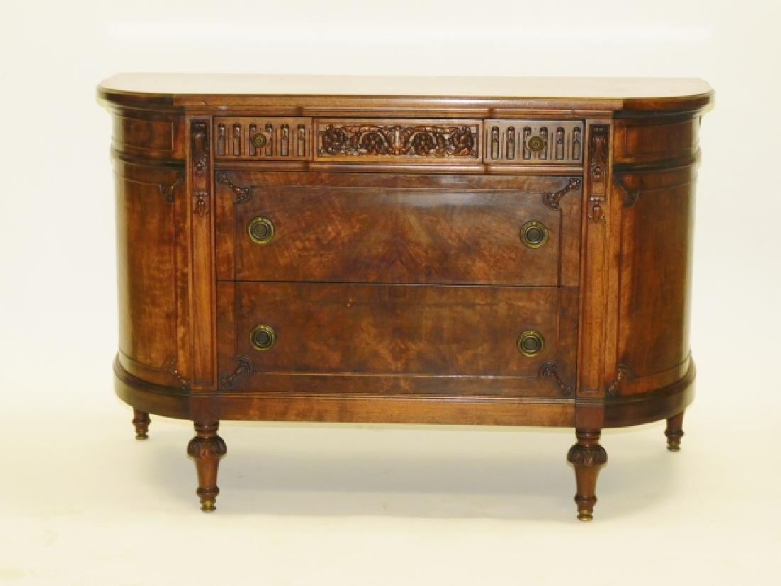 Large French Renaissance Revival Bronze Plaque Mounted MarbleTop Carved Walnut Server, late 19th c.,Large French Renaissance Revival Bronze Plaque Mounted MarbleTop Carved Walnut Server, late 19th c., the architectonic superstructure with arched cornice over mirrored cabinet door with mask, backspla