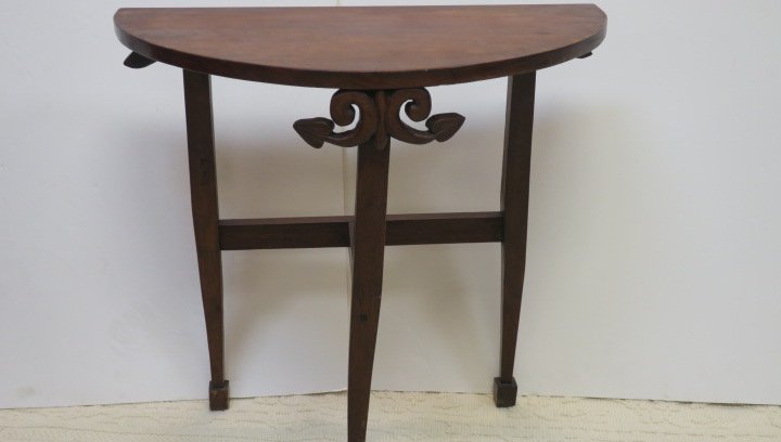 Walnut Demilune Three Leg Table: