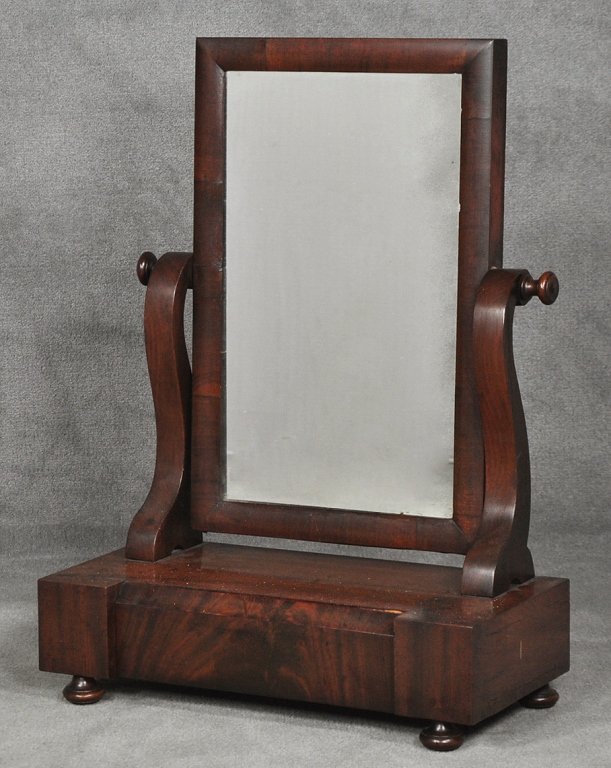 SoldEMPIRE MAHOGANY SHAVING STANDSINGLE DRAWER, CLAW FEET. MAHOGANY. GOOD CONDITION. 18" W x 65" H. THIS ITEM EXCEEDS SIZE LIMITATIONS FOR IN HOUSE SHIPPING.See Sold Price