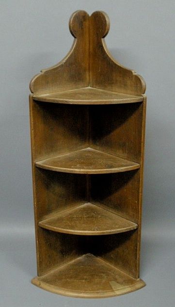 Walnut hanging corner shelf, 20th c. 42.5”h.x