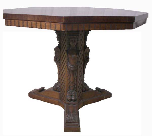 Walnut hexagon top table w/ladies on base