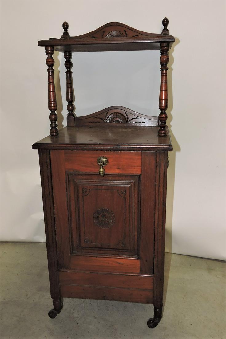 Walnut lamp table with magazine bin,
