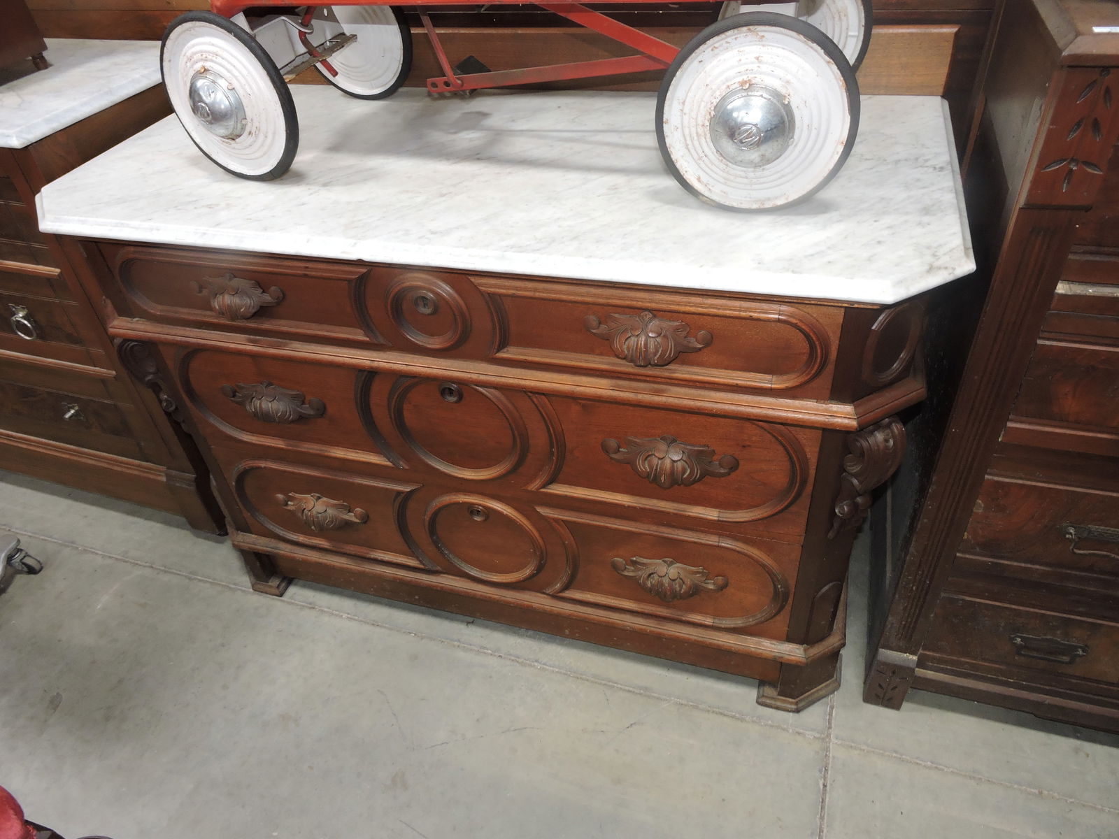 Walnut marble top 3 drawer chest,