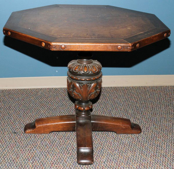 WALNUT OCTAGONAL PEDESTAL TABLE C1900, H 30",