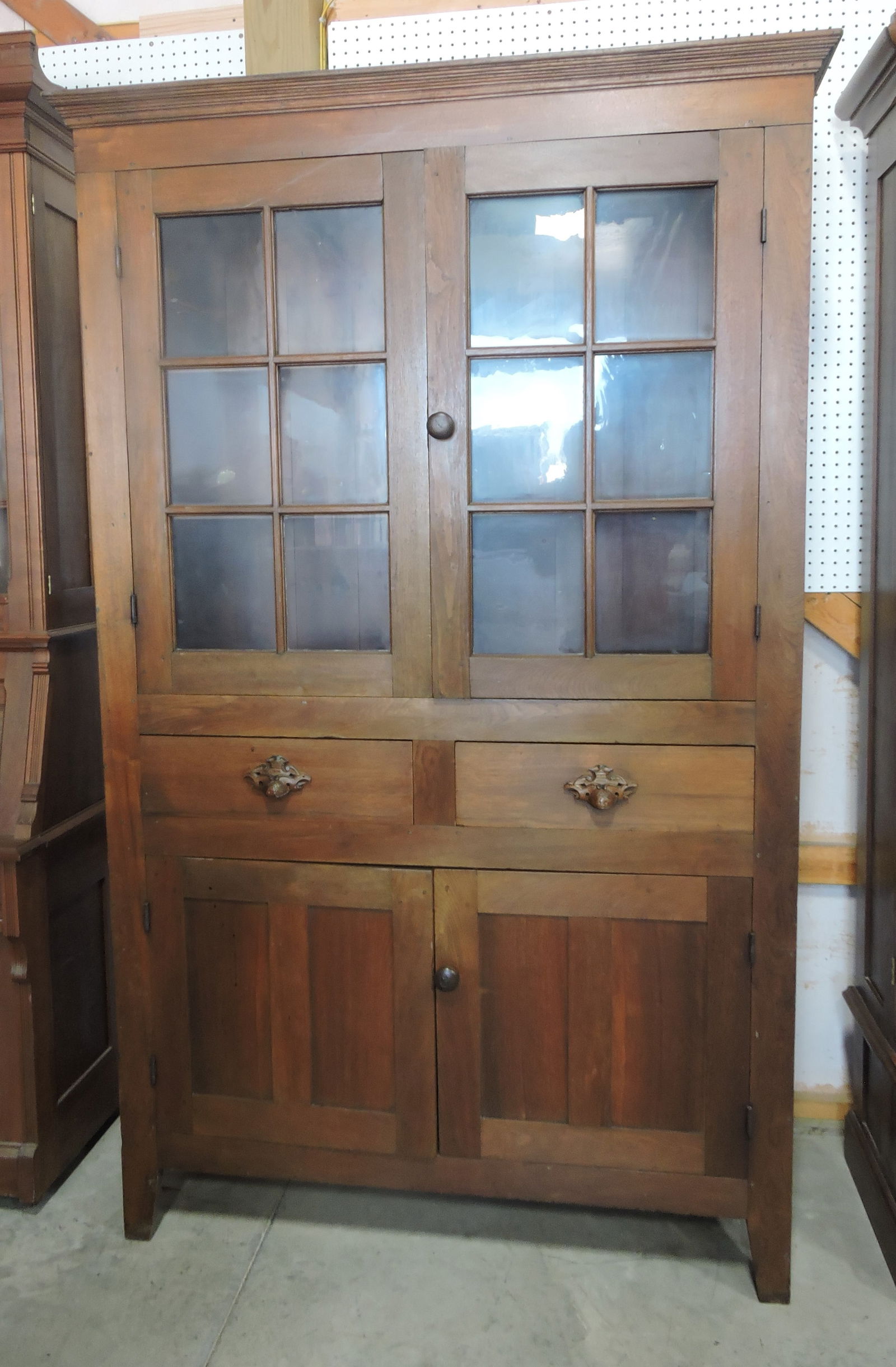 Walnut one piece cupboard, 12 pane,