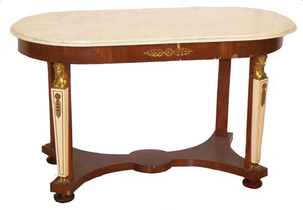 Walnut oval m/t center table w/bz. Egypt. heads