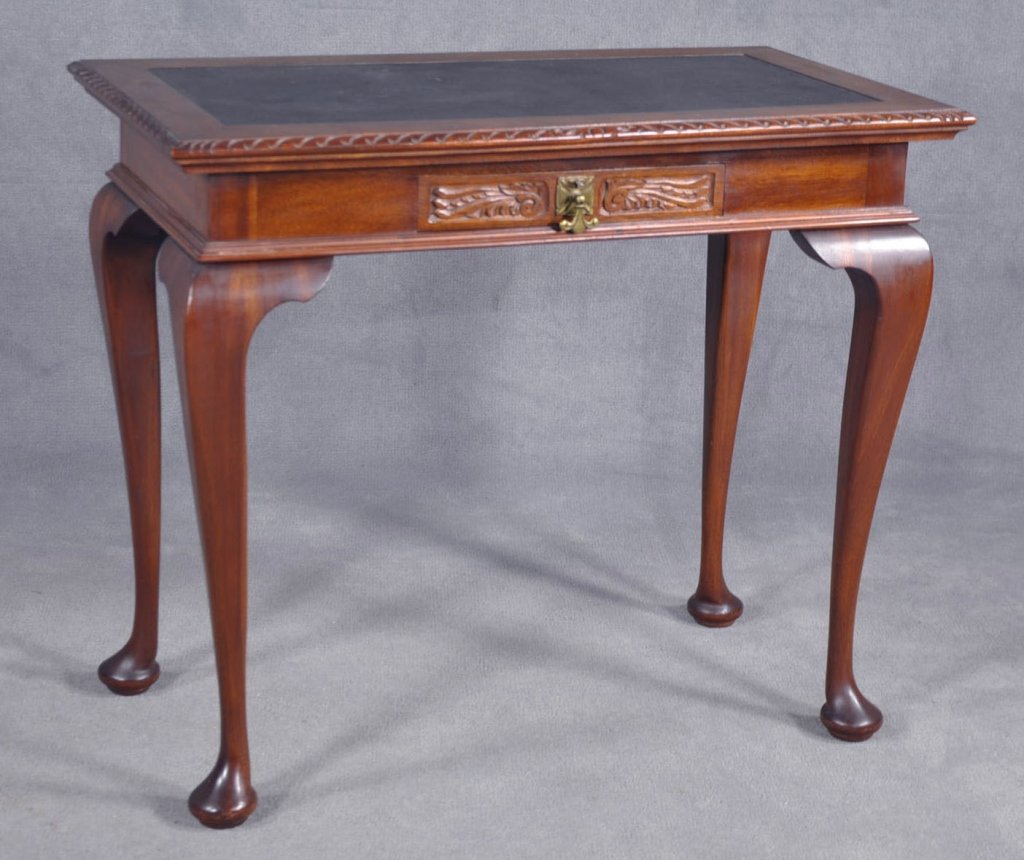 SoldMAHOGANY QUEEN ANNE STYLE CONSOLE TABLEMAHOGANY QUEEN ANNE STYLE CONSOLE TABLE H 28" L 48" D 17" By Harden. Two drawers and serving slides at ends. Circa 1980.See Sold Price