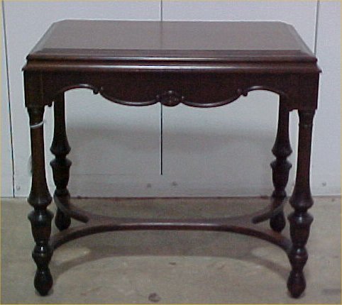 SoldAmerican Victorian Walnut Library Table.American Victorian Walnut Library Table. 29"h. x 48-1/2"w. x 30"d. Condition: Good with wear. Refinished. Top leatherette replaced.See Sold Price