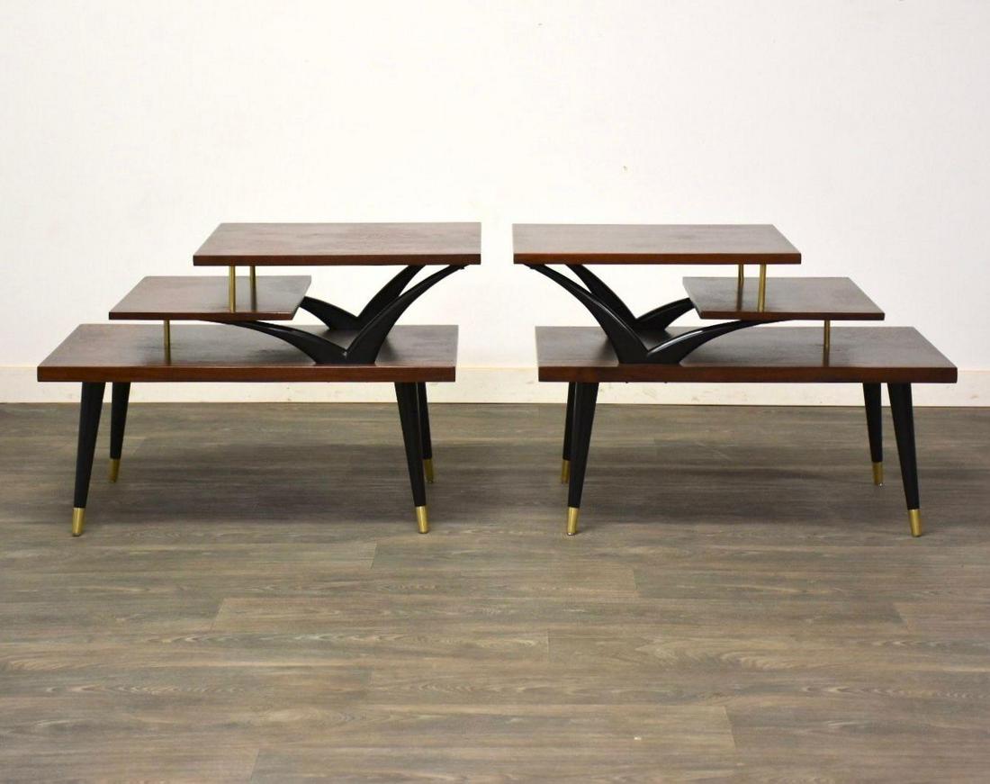 Two Tone, Two Tier Mid-Century Modernist Walnut Side Table