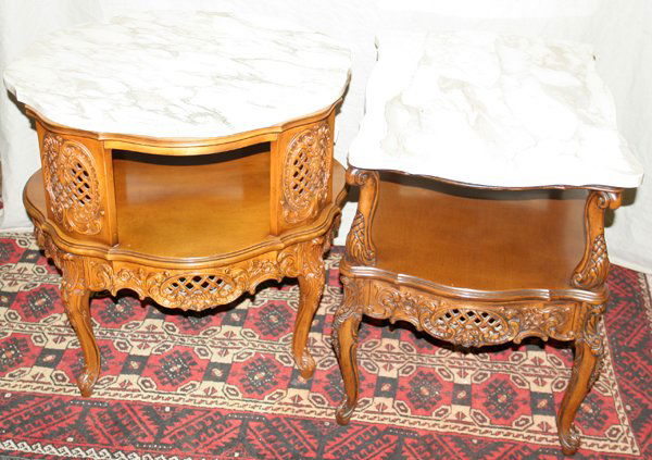 LOUIS XV STYLE ARMCHAIRS AND SIDE TABLE5 days Left19th Century Federal Style Console Tables, Mahogany, Opposing Eagles, MarbleVintage Drexel Heritage Chippendale Flame Mahogany Side Tables - Set of 2Pair Italian Rococo Style Walnut Carved Demilune Marble Top NightstandsMar 15, 2026Modern Style Marble Top Walnut Side Tables, PairMay 07, 2026Nice pair antique French rosewood & walnut bronze side lamp tables6 days LeftPair of antique leather top french style square game tables in mahogany6 days LeftPair of Spanish Baroque Style Walnut Demilune TablesMar 12, 2026French Pair of Walnut Nightstands / CabinetsMar 09, 2026AN UNUSUAL PAIR OF GEORGE III MAHOGANY, MARQUETRY AND SIMULATED MARBLE SIDE TABLES, CIRCA 1780Mar 25, 2026A pair of rococo-style painted wooden pier tables, of recent manufacture, Italian,Mar 17, 2026Inlaid Victorian coffee table, cut down, comes with original legs, they were converted to smallMar 09, 2026French Empire Style Marble Top Round Lamp Tables Pair4 days LeftPair English Chinois cabinets with faux shell tops, top veneer & veneer on sides is separating, needMar 09, 2026Pair marble top carved base stands, bases were originally part of large piece of furniture, marbleMar 09, 2026Pair of French Art Deco Burl Veneer Bedside TablesMar 11, 2026